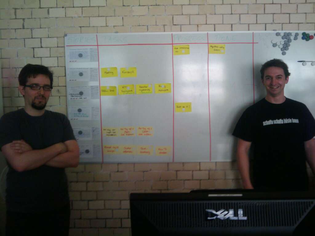 Speedplanning... über 60 Storypoints in 2,5 Stunden auf den Weg gebracht, jetzt kanns losgehen, Scrum of Pi! http://twitgoo.com/nz6tt